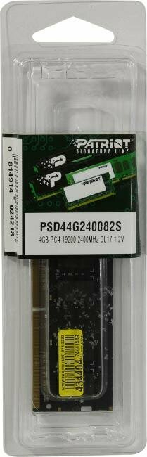 Модуль памяти SODIMM DDR4 4GB Patriot Memory PSD44G240082S Signature PC4-19200 2400MHz CL17 1.2V 2Rx8 RTL