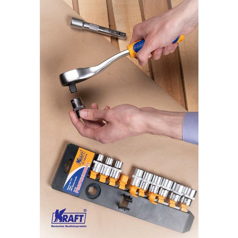Набор торцевых головок Kraft "Professional", с трещоточным ключом, 1/2", 12 предметов