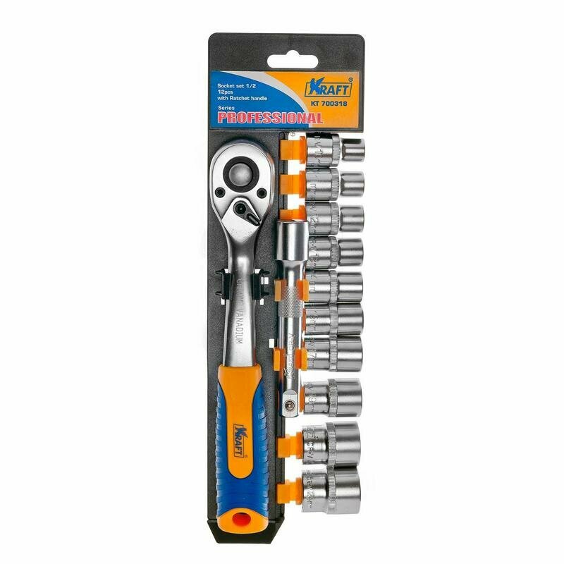 KRAFT KT 700318 набор головок торцевых с трещоткой 1 / 2dr 12 предметов