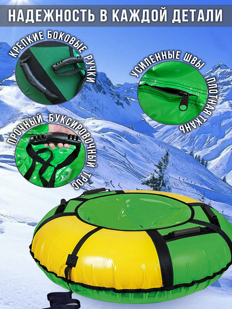 Ватрушка тюбинг диаметр 95 см, ПВХ, мягкие ручки, буксировочный трос, зеленый-желтый Классик Nika