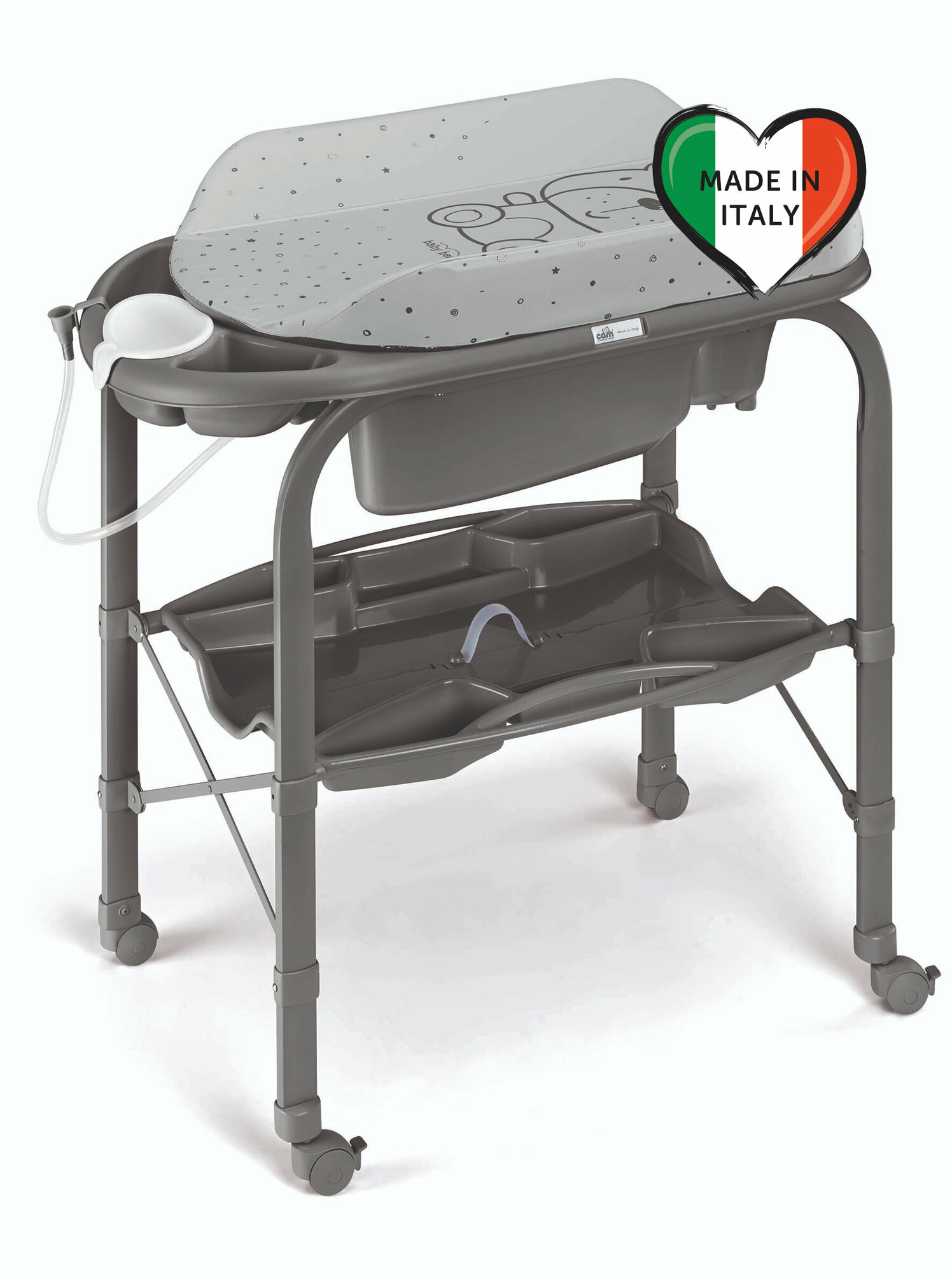 Пеленальный стол Cam Cambio с ванночкой под съемным матрасиком, нижняя полка, отделение для бутылочек, место под губку и мыло