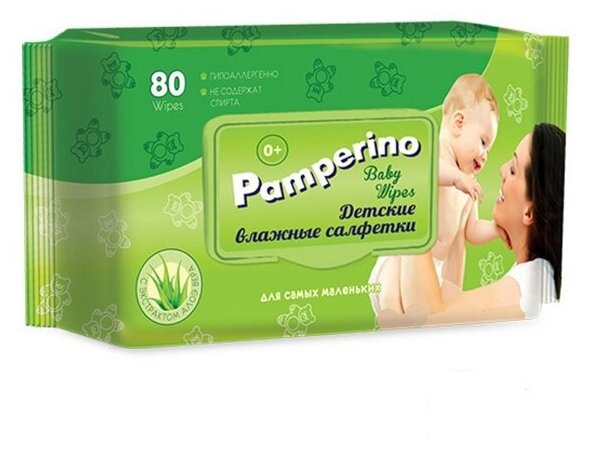 Салфетки влажные PAMPERINO детские 80шт в упаковке с клапаном, 1 уп.