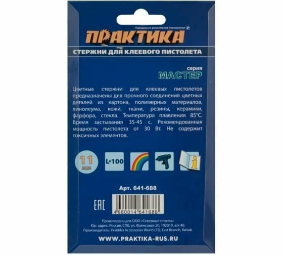 Ниже Вы можете прочитать отзывы на Стержень (клей) для клеевого пистолета ПРАКТИКА 3 цвета, 6 шт 641-688, ознакомится с подробными характеристиками, посмотреть интересные обзоры и фотографии на Стержень (клей) для клеевого пистолета ПРАКТИКА 3 цвета, 6 шт 641-688.
