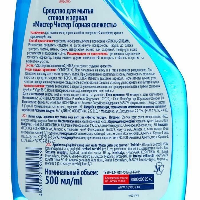 Невская косметика Средство для мытья стекол и зеркал Мистер Чистер Горная свежесть 500 мл