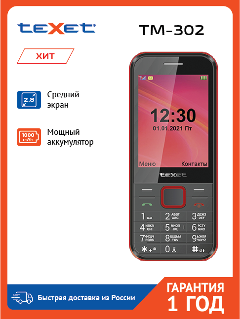 СохранитьСотовый телефон Texet TM-302 черный-красный интересное: