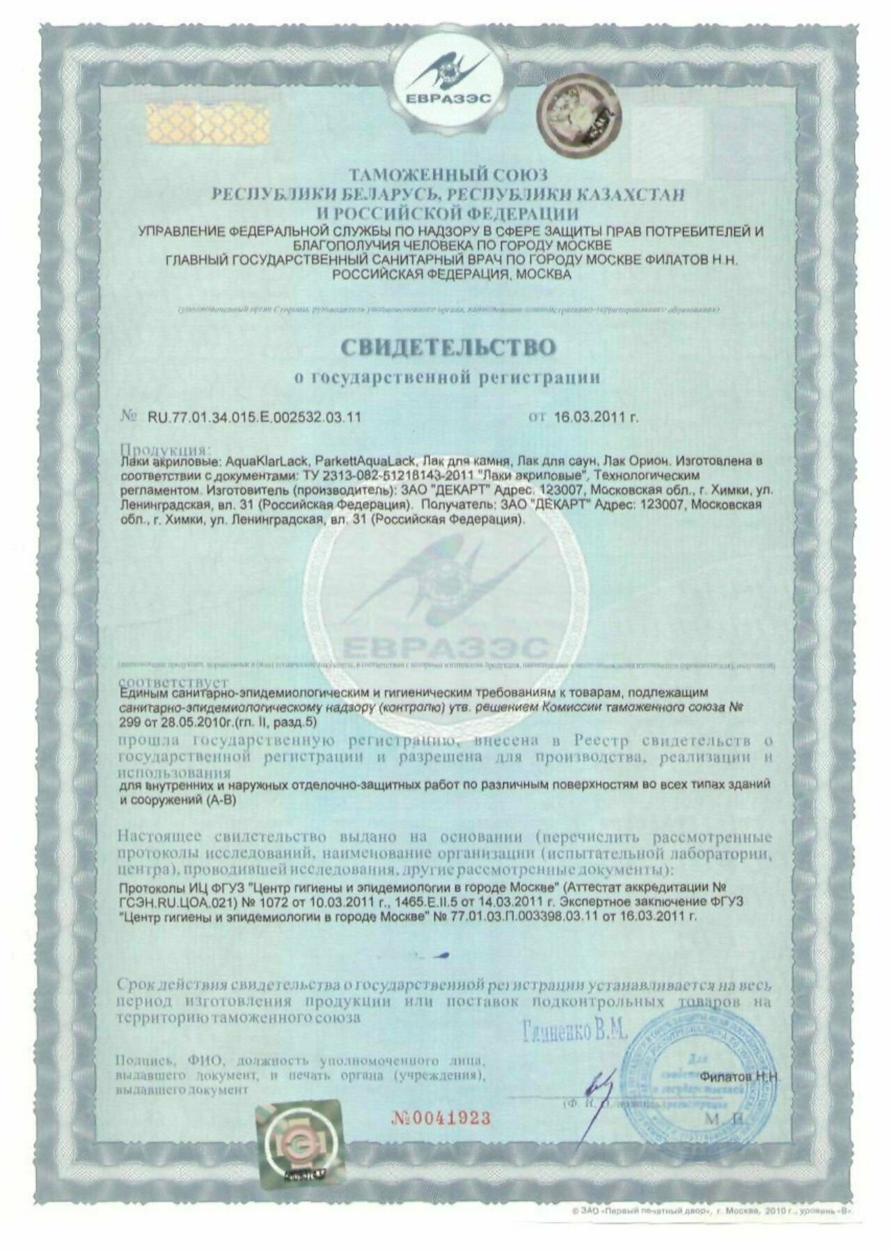 | Время высыхания | 24 часов |