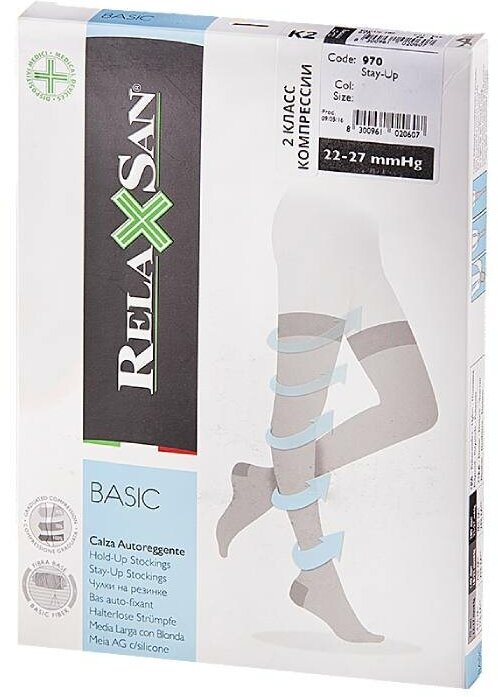 Купить Чулки Relaxsan Basic Stay-Up 280 den 970 с силиконовым лентами противоварикозные, 2 класс, размер: 4, телесный