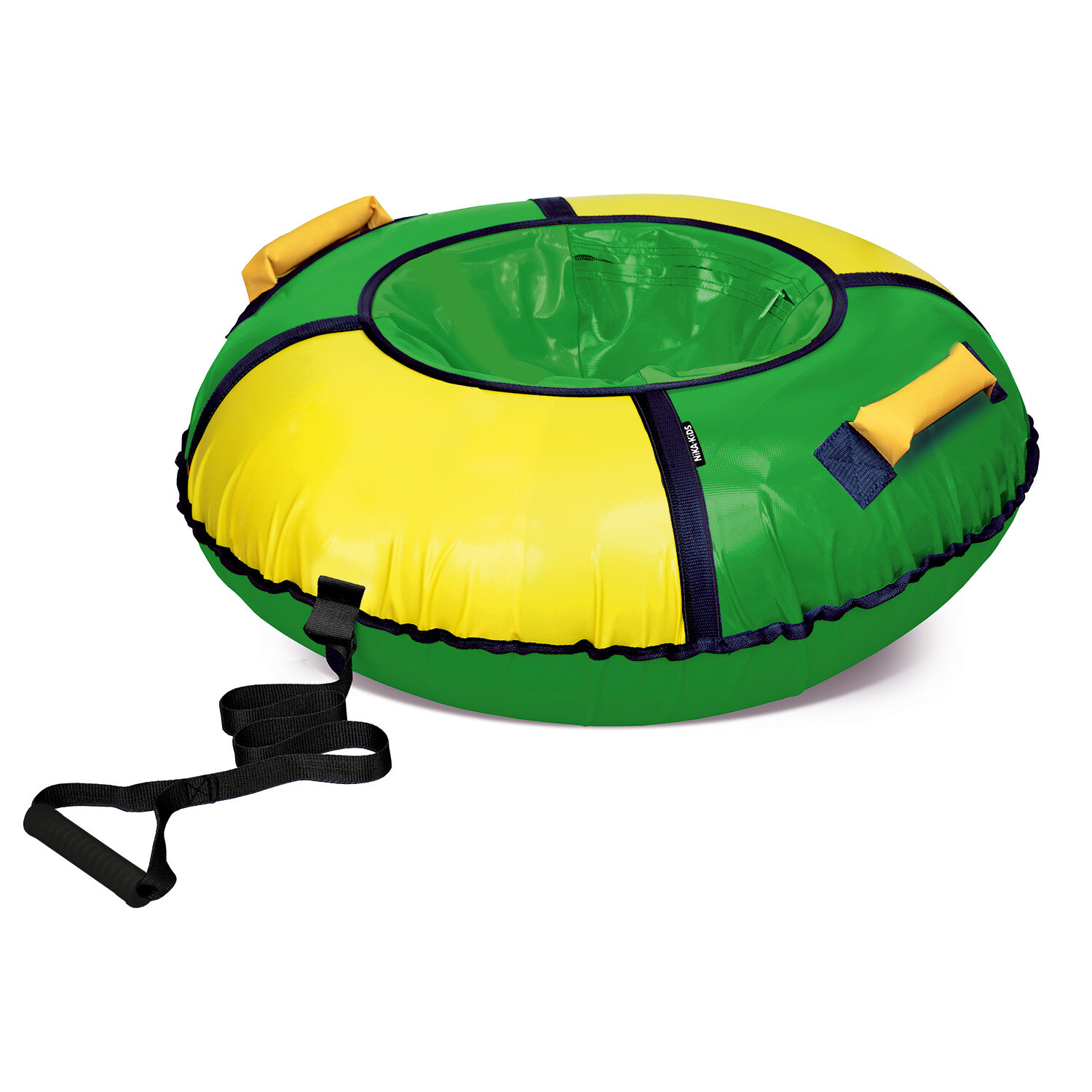 Ватрушка тюбинг диаметр 95 см, ПВХ, мягкие ручки, буксировочный трос, зеленый-желтый Классик Nika