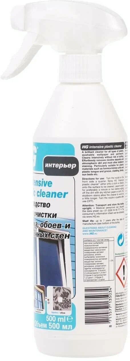 HG Средство Intensive Plastic Cleaner для очистки пластика, обоев и окрашенных стен, 500 мл