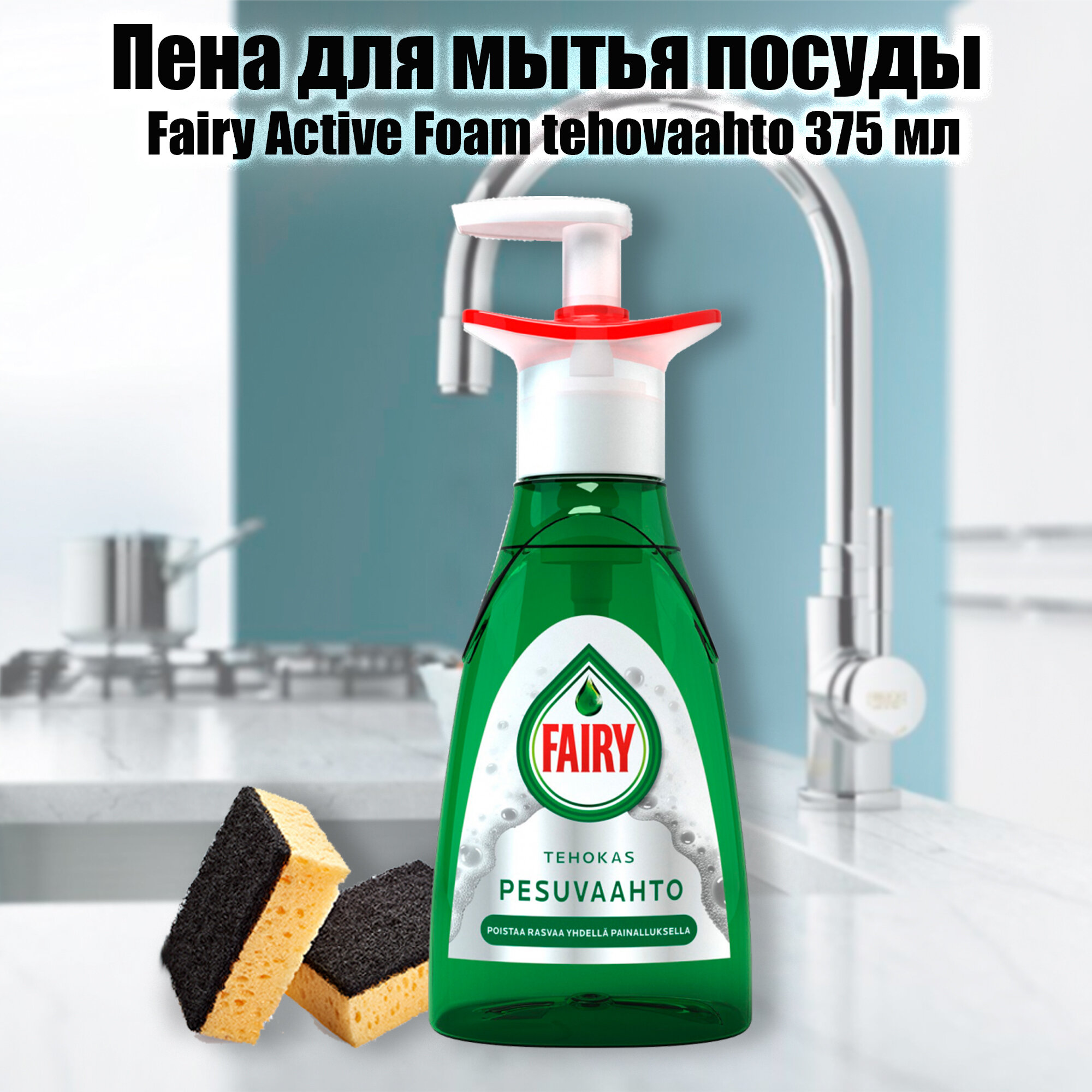 Активная пена для мытья посуды Fairy Active Foam tehovaahto 375 мл х1 шт, финские товары