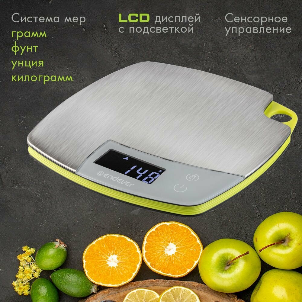Кухонные весы ENDEVER, стальные, электронные, предел взвешивания 5кг, точность 1г, функции