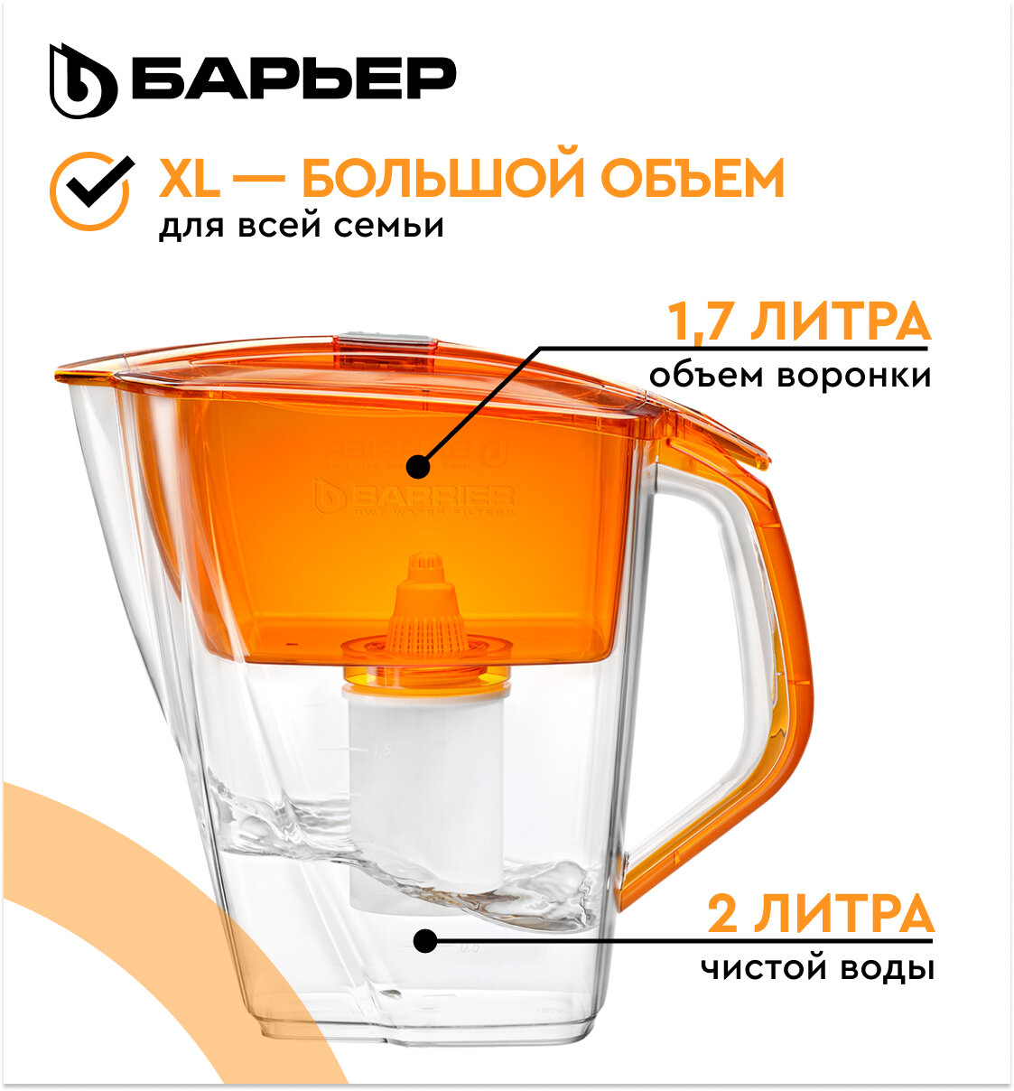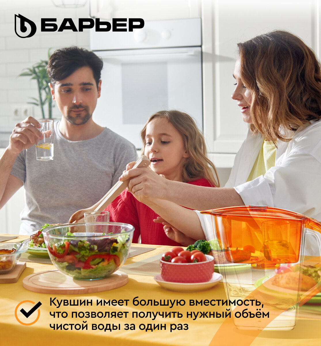 СохранитьФильтр-кувшин Барьер, Гранд Нео, 1 ступ, 4 л, оранжевый, янтарь, В014Р00 интересное: