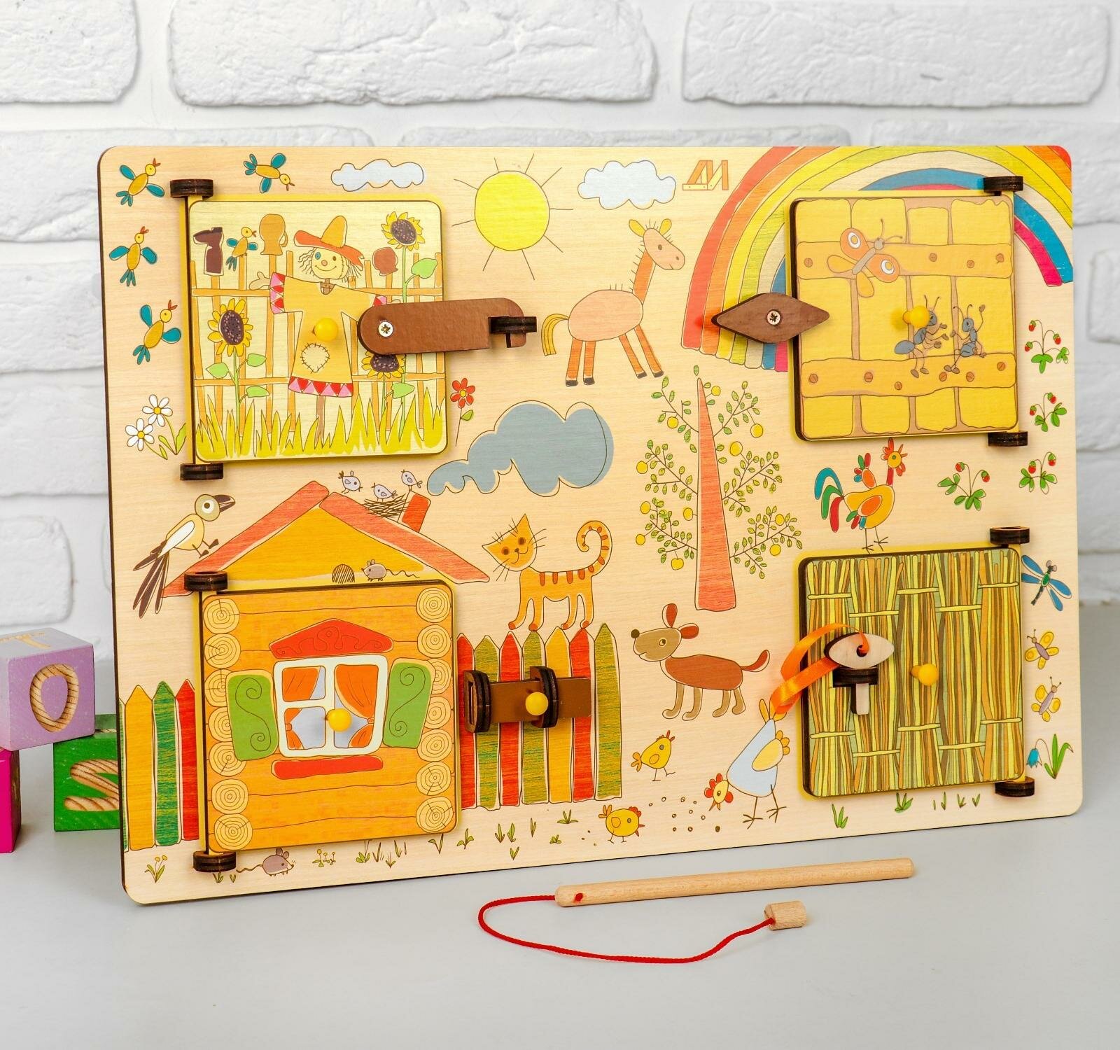 Развивающая доска Бизиборд "Ферма", игрушка для развития мелкой моторики