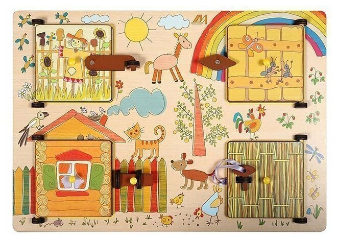 | Отзыв: | У ребёнка на занятиях по Монтессори был такой бизиборд, решила купить и домой. Очень качественный и интересный. Животные за дверками похожи на реальных, а то в некоторых игрушках рисуют каких то непонятных инопланетян)) разные замочки, сильный магнит на удочке. Ребёнок занимается с удовольствием. |