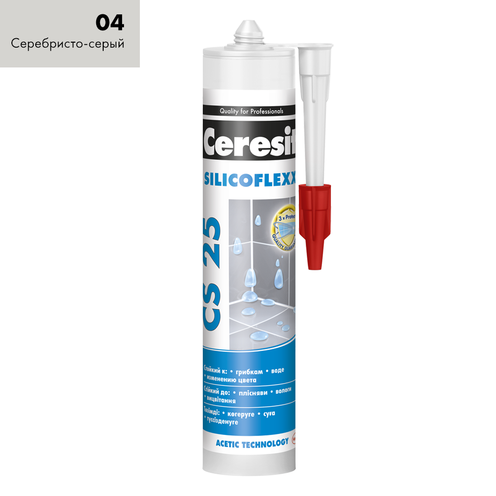 Затирка-герметик силиконовая Церезит CS 25 №04 "Серебристо-серый", 280мл