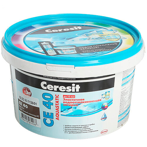 СохранитьЗатирка для швов до 10 мм. водоотталкивающая Ceresit СЕ 40 Aquastatic 60 темно-шоколадная 2 кг. интересное: