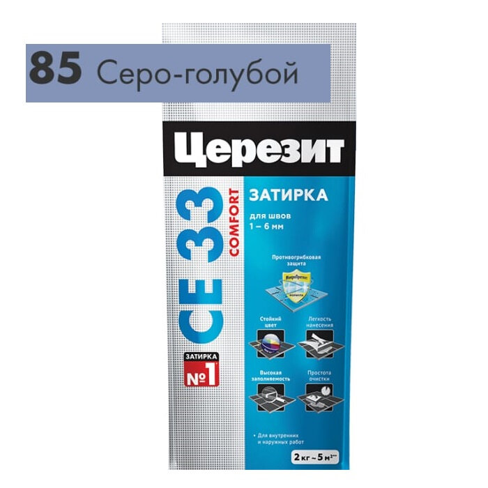 Ниже Вы можете прочитать отзывы на Затирка Ceresit CE 33 Comfort 2 кг серо-голубой 85, ознакомится с подробными характеристиками, посмотреть интересные обзоры и фотографии на Затирка Ceresit CE 33 Comfort 2 кг серо-голубой 85.