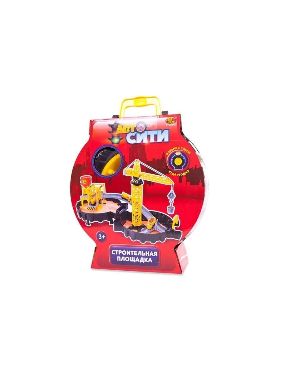 ABtoys (АБтойс) Строительная площадка "Авто Сити", 2-х уровневая, в чемоданчике-автошине