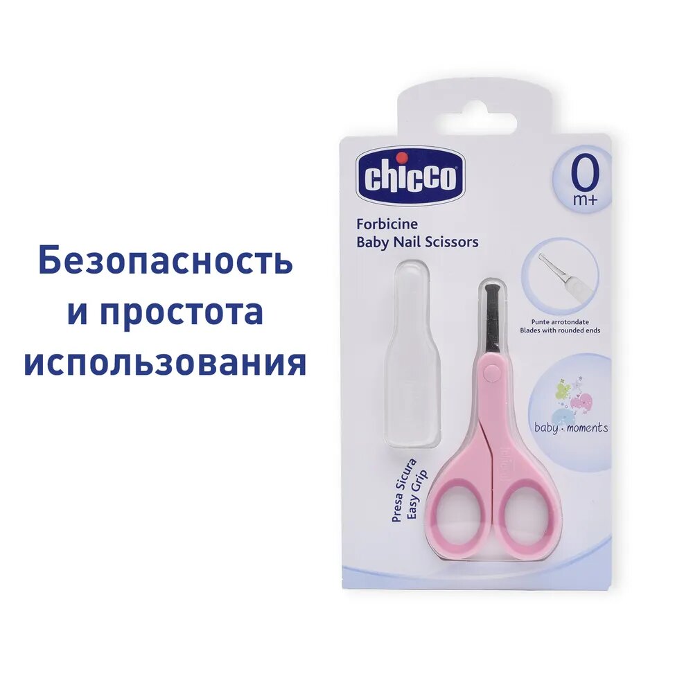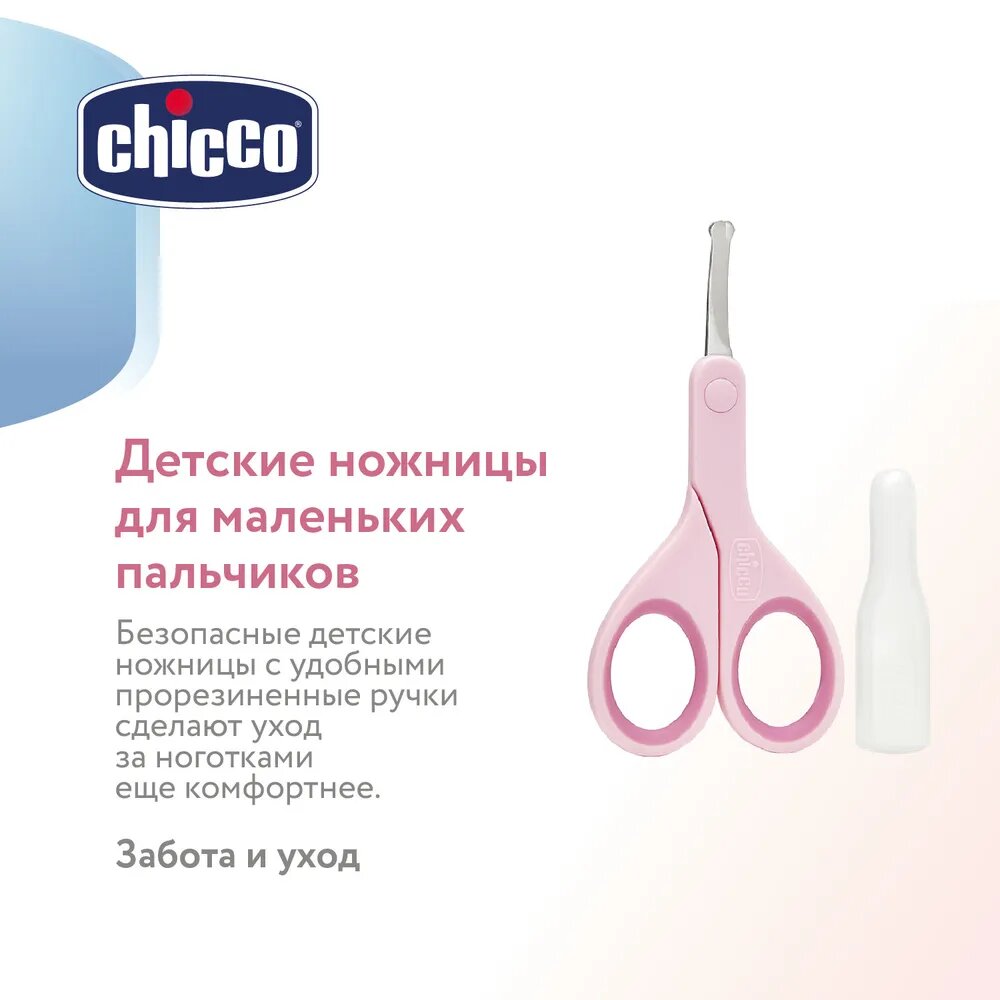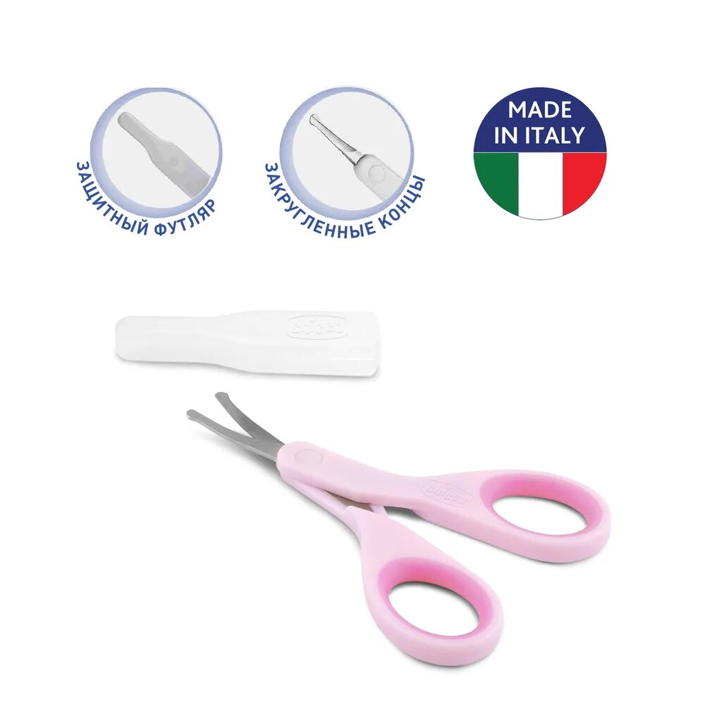 Ножницы детские Chicco из нержавеющей стали с закругленными концами, цвет розовый 0+/детские ножницы маникюрные/ножницы для новорожденных/детские ножницы для ногтей/chicco ножницы детские