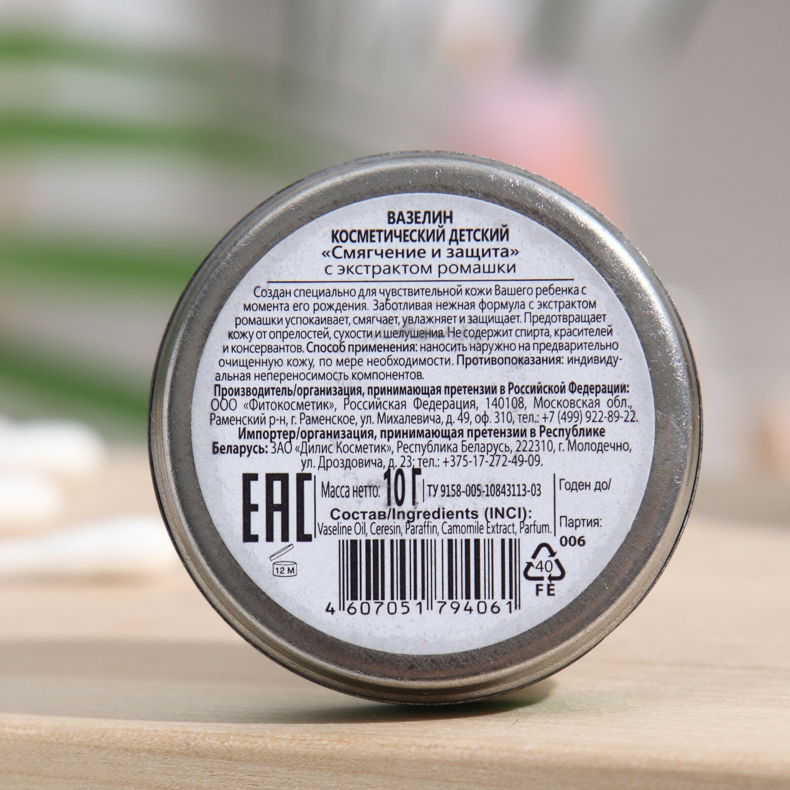 Фитокосметик Вазелин косметический Детский с экстрактом Ромашки 10 г