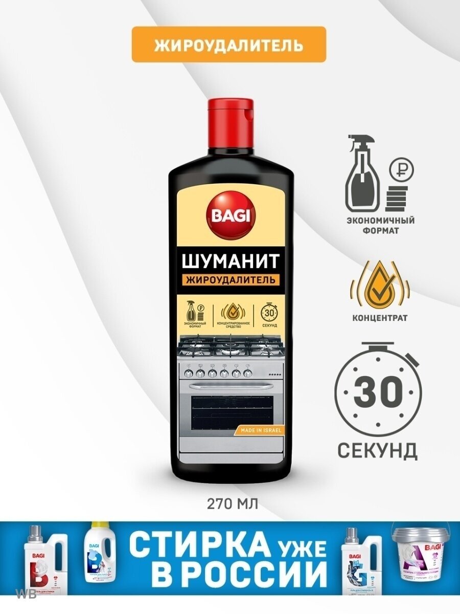 Концентрированное средство Шуманит жироудалитель Bagi, 400 мл, 400 г