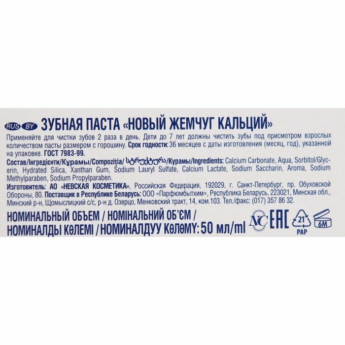 Зубная паста Новый Жемчуг Кальций - Невская косметика