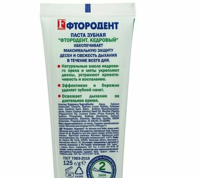 Ниже Вы можете прочитать отзывы на Зубная паста фтородент Кедровый 125г, ознакомится с подробными характеристиками, посмотреть интересные обзоры и фотографии на Зубная паста фтородент Кедровый 125г.