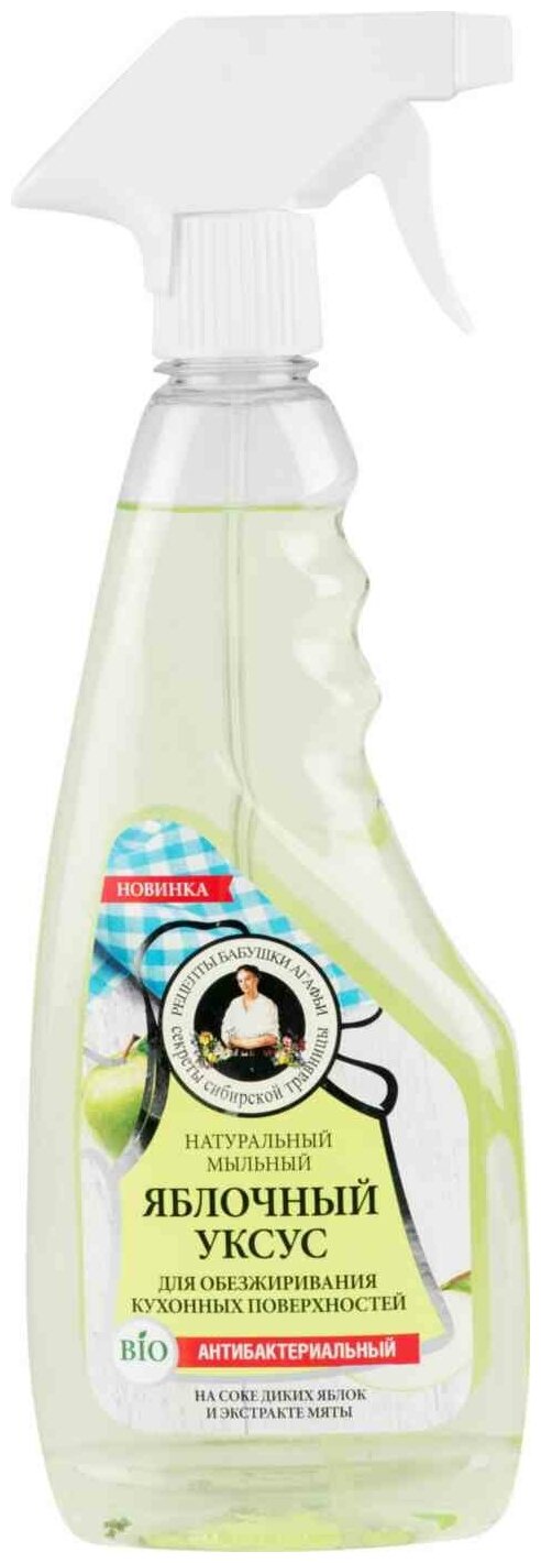 Уксус мыльный жидкий яблочный антибактериальный для обезжиривания кухонных поверхностей Рецепты бабушки Агафьи, 450 мл