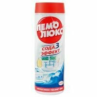 Хорошо справляется со своими задачами. Приятный аромат. Недостатки: Не щадит некоторые поверхности. Порошкообразное средство с содой и ароматом свежести подходит для наведения чистоты. |