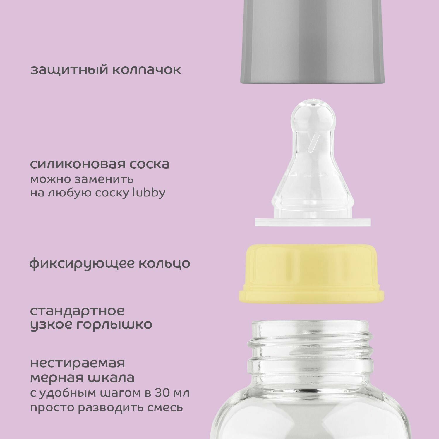 Lubby Стеклянная бутылочка с силиконовой соской, 125 мл, с рождения, сиреневый интересное:
