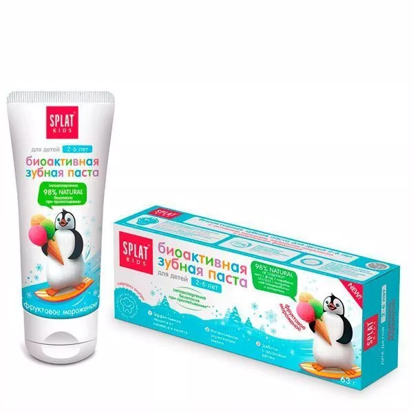 Зубная паста детская Splat Kids фруктовое мороженое, биоактивная, защита от кариеса, укрепление эмали и десен, от 2 до 6 лет, 50 мл