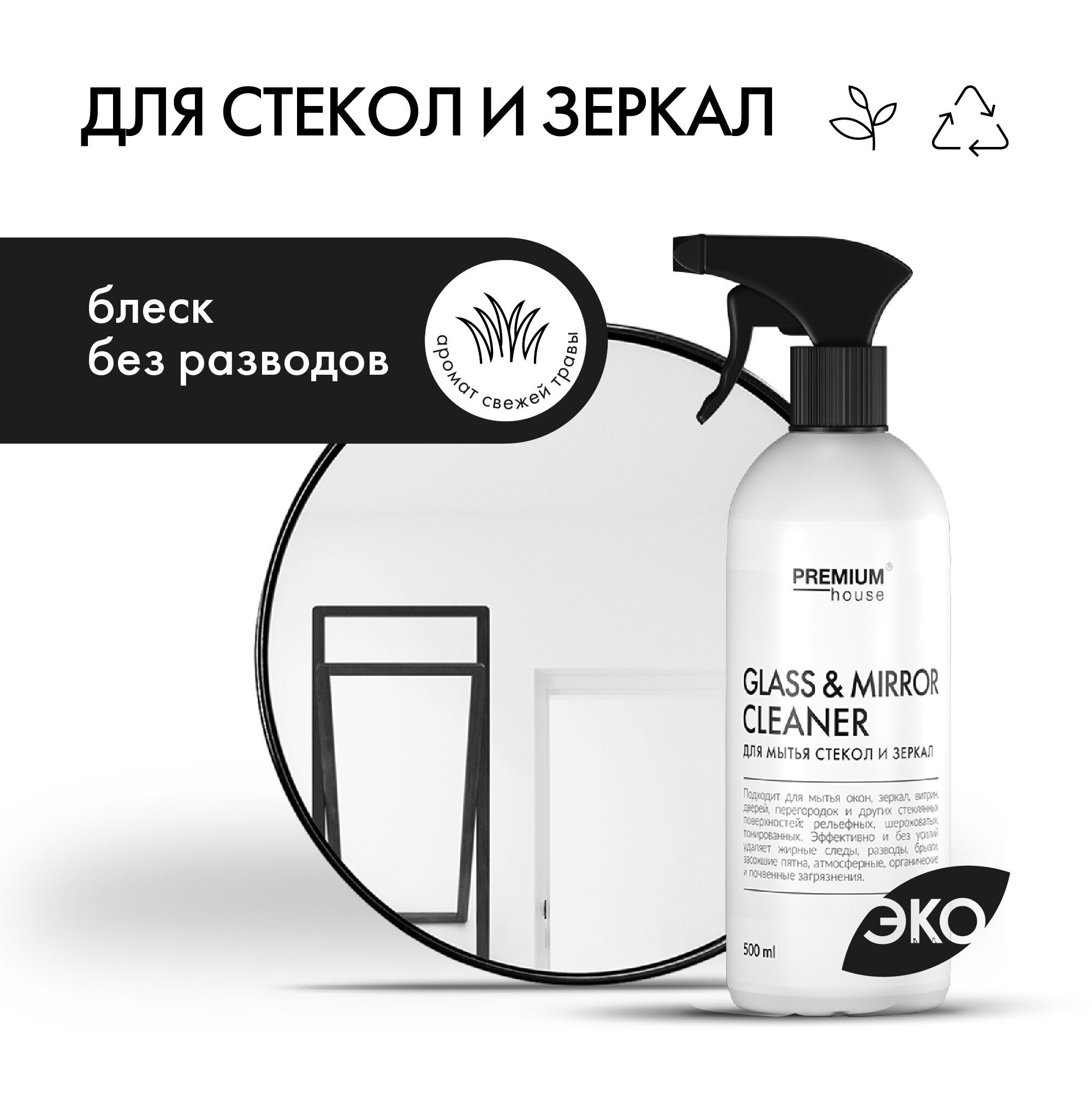Средство для мытья стекол и зеркал Premium House Glass | Mirror Cleaner (0,5л)