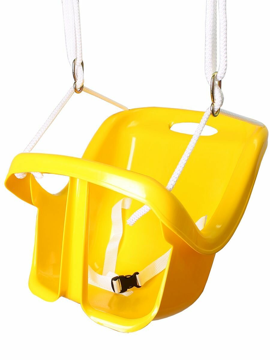 Качели детские из пластика с регулировкой по высоте и дополнительным ремнём безопасности Малютка