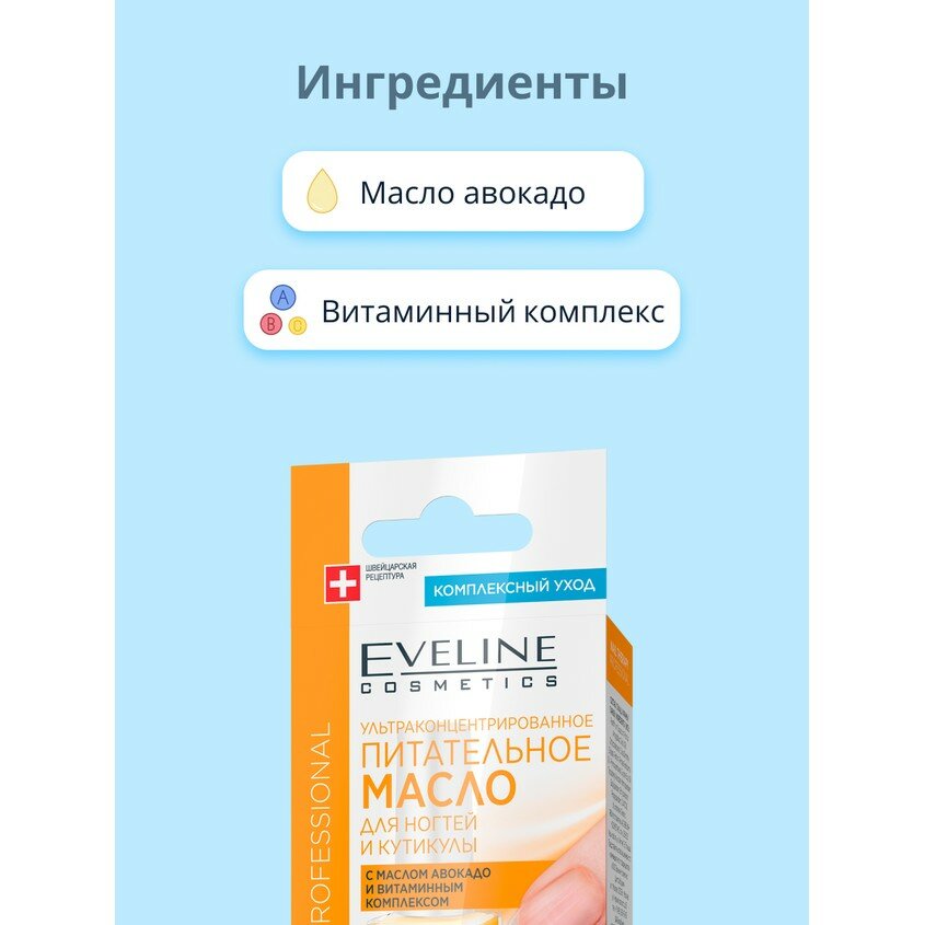 Eveline Питательное масло для ногтей и кутикулы Nail Therapy professional с маслом авокадо и витаминным комплексом, 12 мл