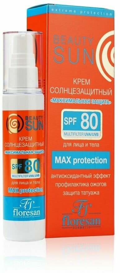 FLORESAN Крем солнцезащитный Максимальная защита, SPF80, Beauty Sun, 75 мл, FLORESAN