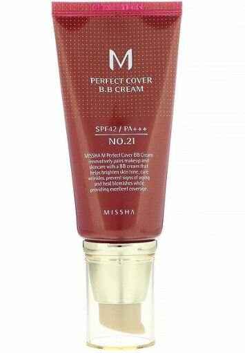 MISSHA тональный bb-крем для лица солнцезащитный #21 (50 мл.) M Perfect Cover BB Cream SPF42 PA+++ / Корейская косметика