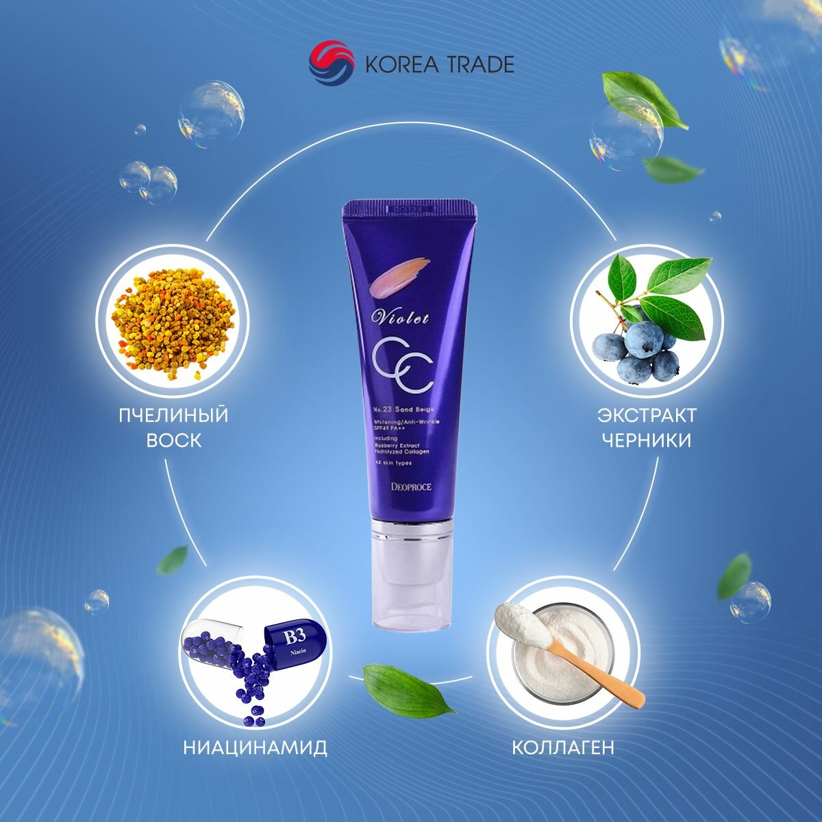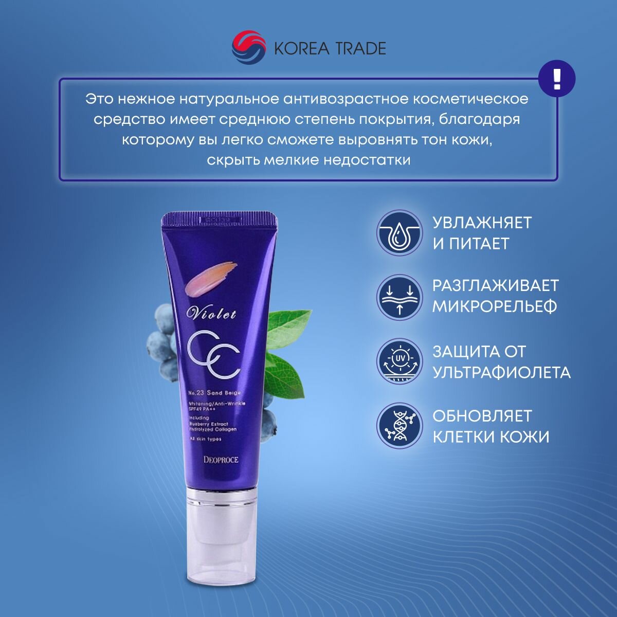 Купить DEOPROCE VIOLET CC CREAM #23 Антивозрастной СС крем с экстрактом черники и коллагеном 50г