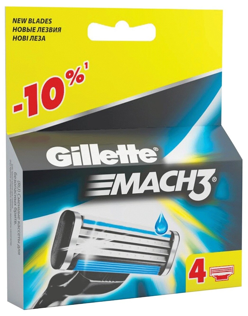 GILLETTE Mach 3 Сменные кассеты для бритья с 3 лезвиями, мужские, 4 шт