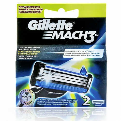 GILLETTE Mach 3 Сменные кассеты для бритья с 3 лезвиями, мужские, 2 шт