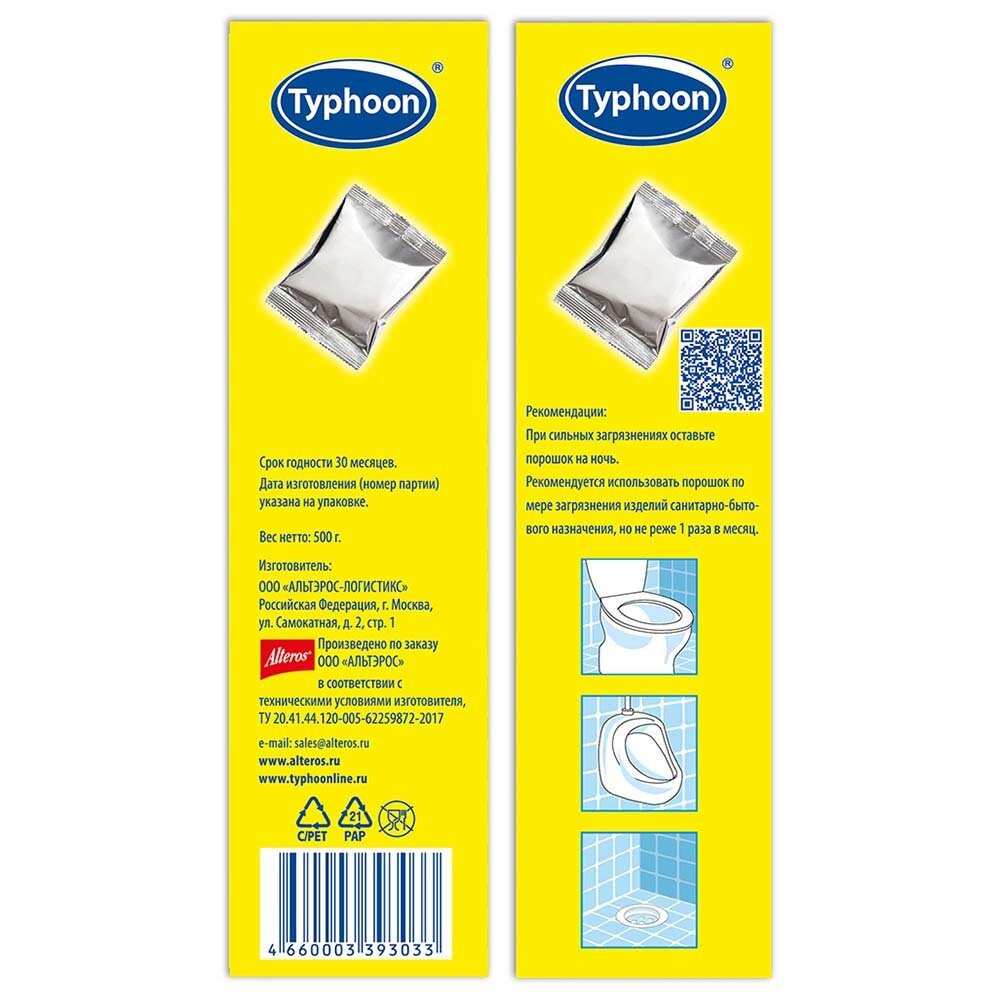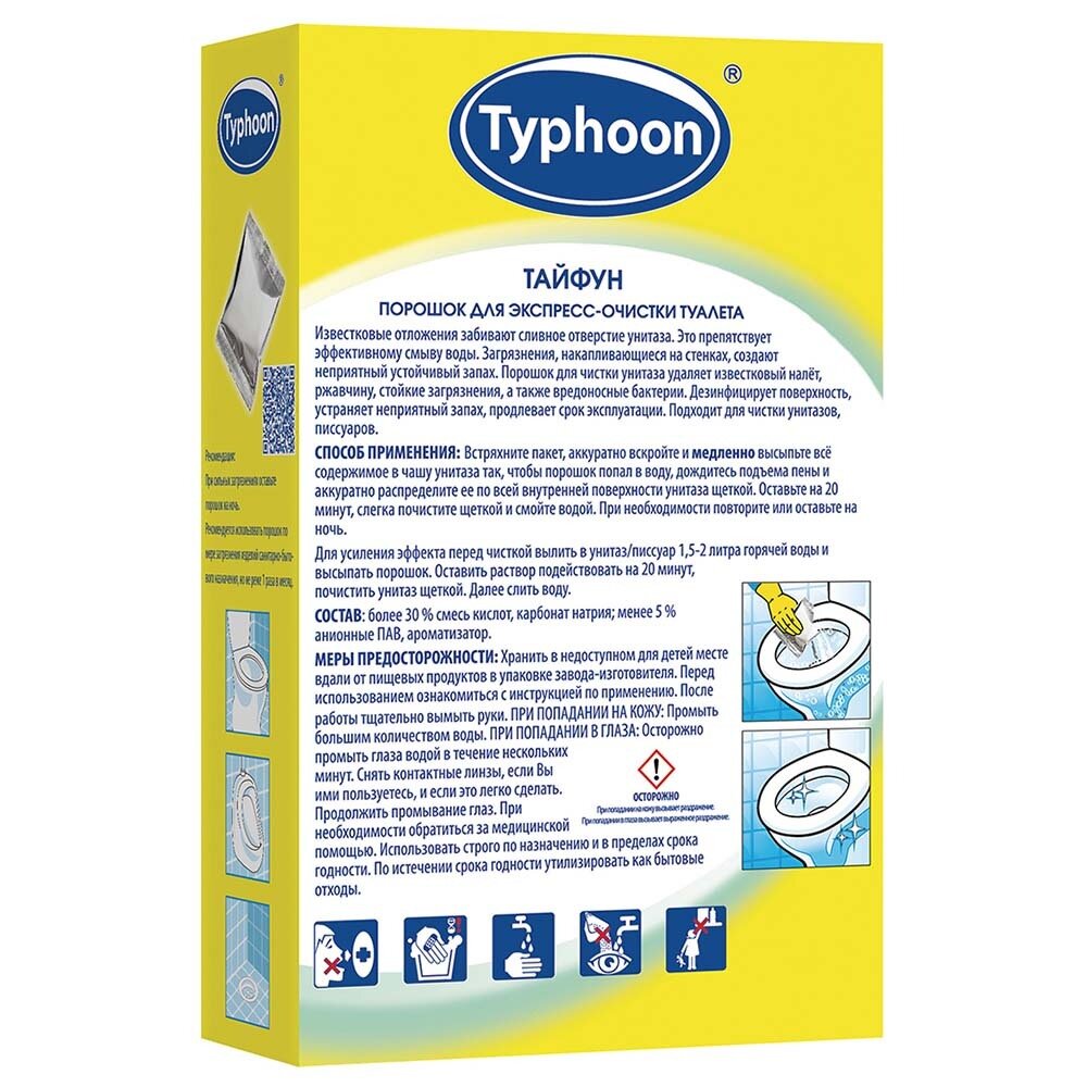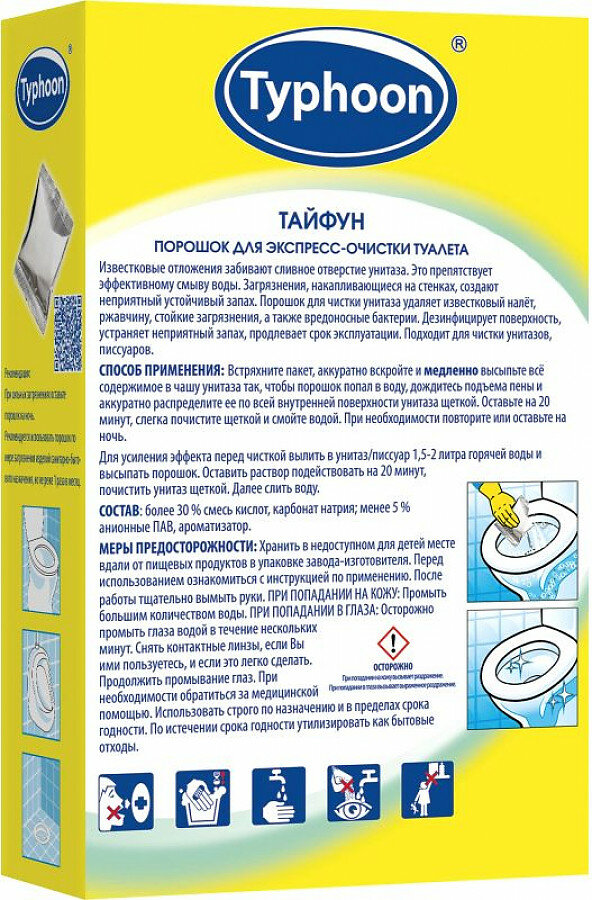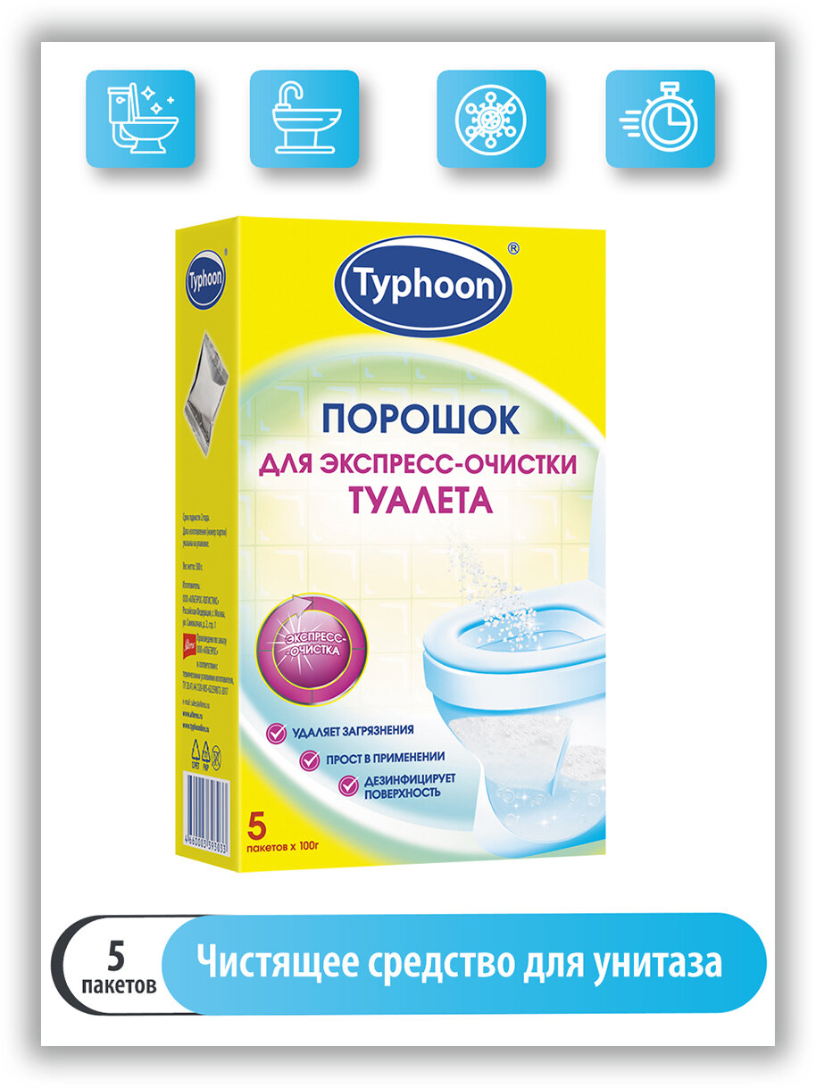 Тайфун Порошок для экспресс-очистки туалета, 5 шт. х 100 г. интересное: