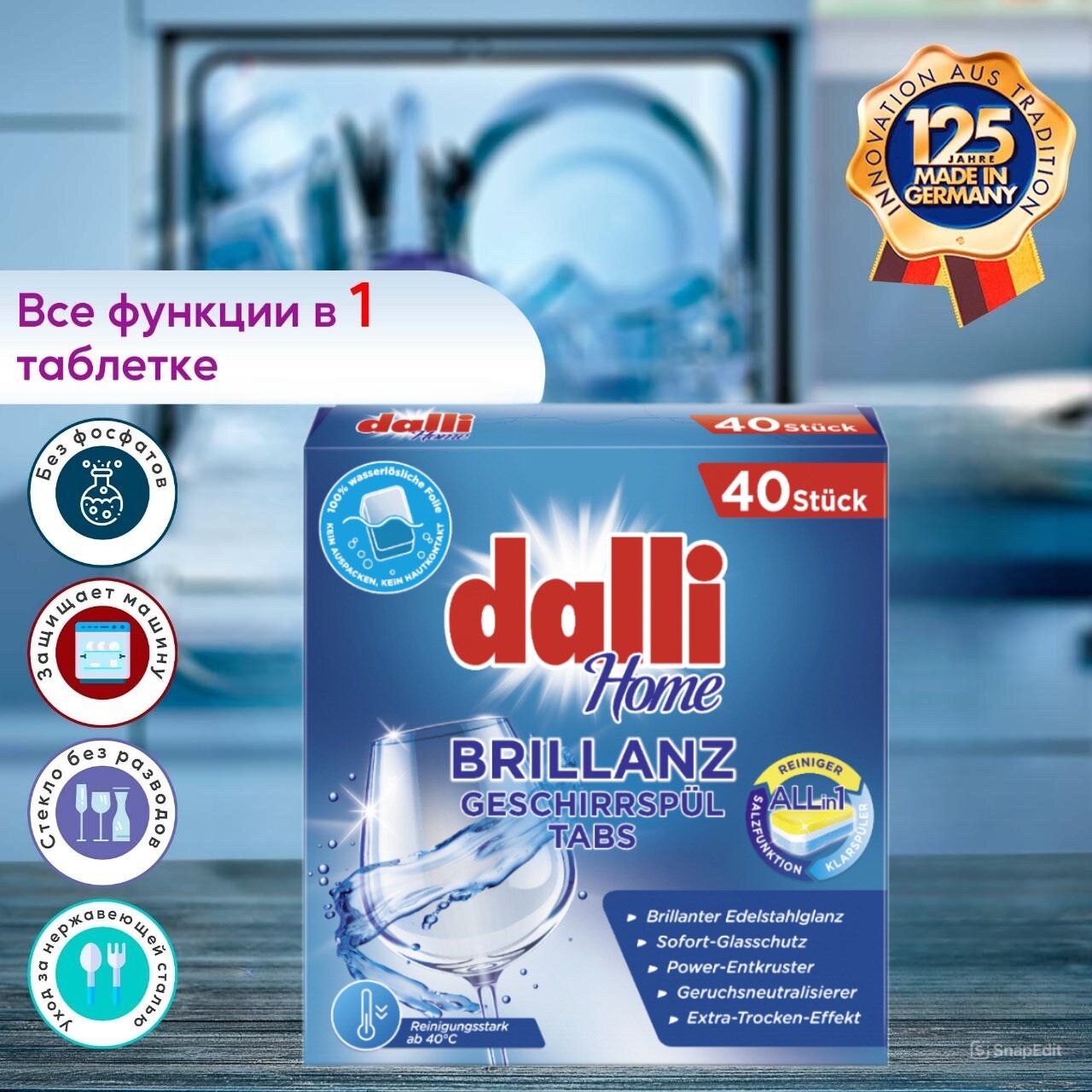 Биоразлагаемые таблетки для посудомоечных машин Dalli Brillanz, 40 шт. интересное: