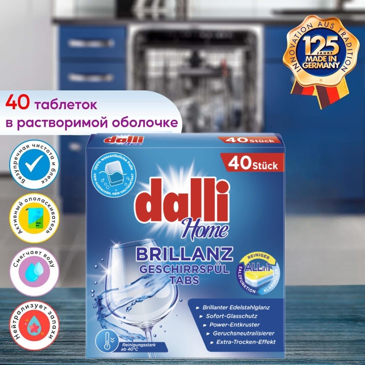 Купить Биоразлагаемые таблетки для посудомоечных машин Dalli Brillanz, 40 шт.