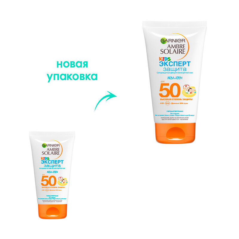Garnier Детский солнцезащитный Аква-Крем Ambre Solaire "Эксперт Защита KIDS", SPF 50, гипоаллергенный, 150 мл
