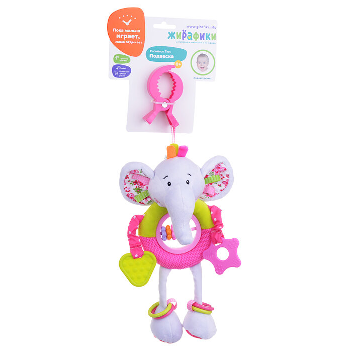 Подвесная игрушка Жирафики Слонёнок Тим (93596) белый/розовый/салатовый