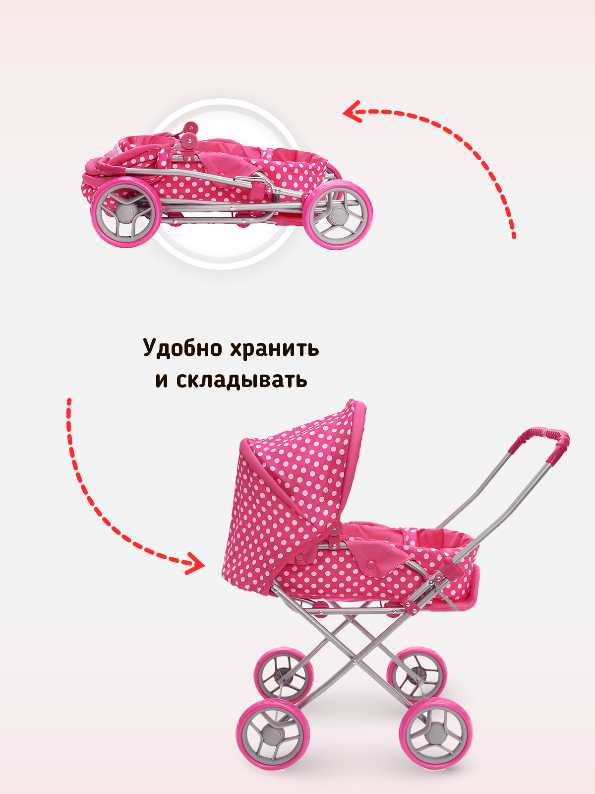 Детская игрушечная прогулочная коляска Amidea для кукол Mixy 8029 с люлькой-переноской и козырьком