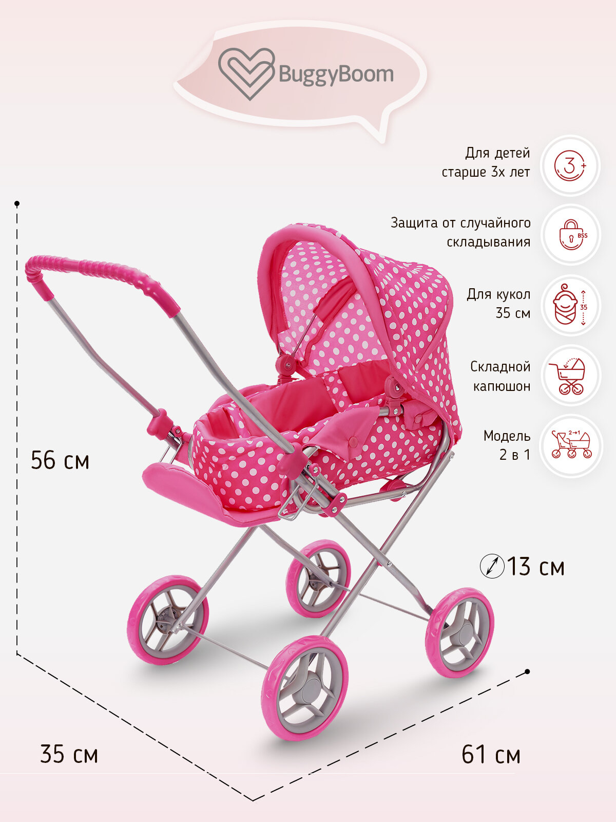 Детская игрушечная прогулочная коляска Buggy Boom для кукол Mixy 8029 с люлькой-переноской и козырьком