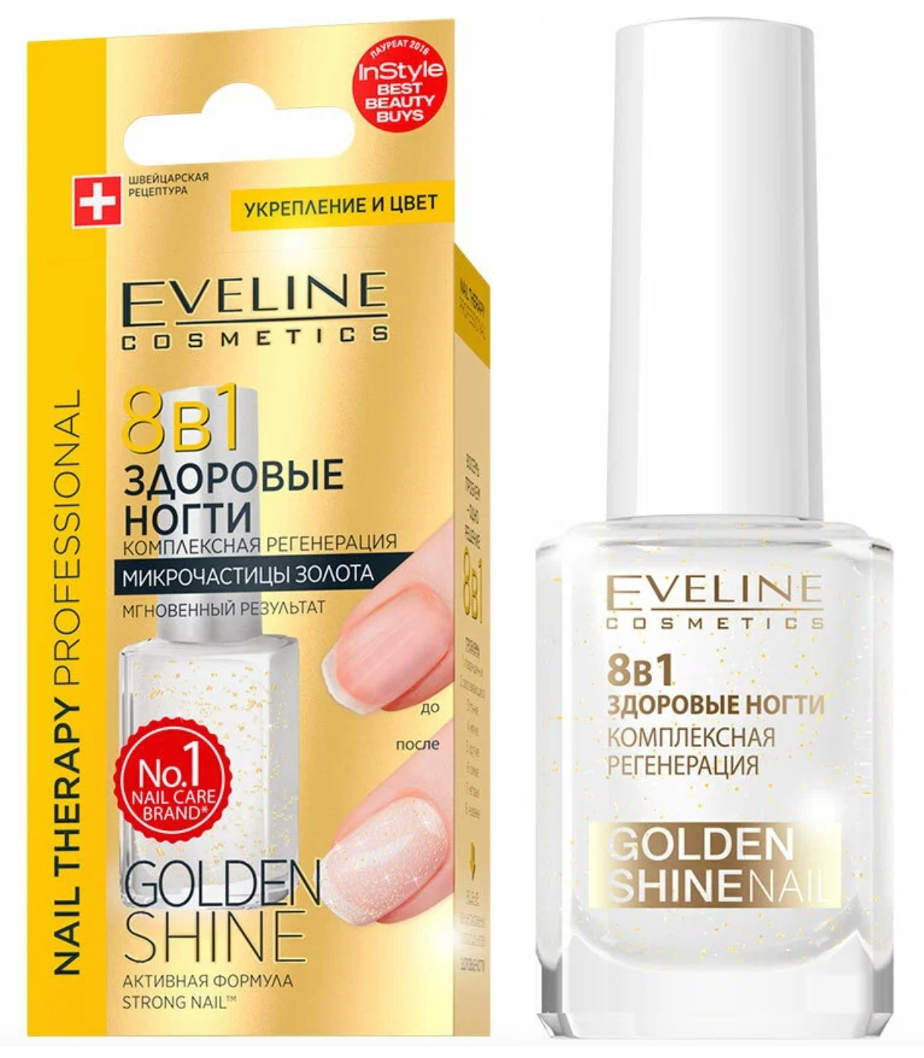 Eveline Cosmetics Здоровые ногти 8 в 1 Высокоэффективный Препарат для Регенерации и Укрепления ногтевой пластины с золотом, 12мл