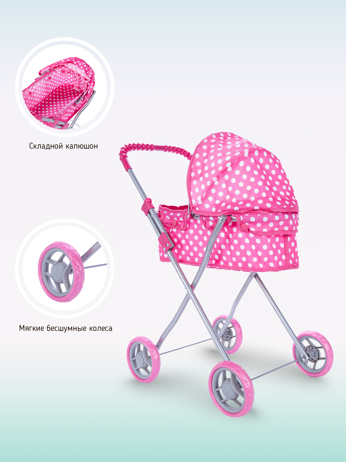 Детская игрушечная классическая коляска Amidea для кукол Mixy 8011 с козырьком