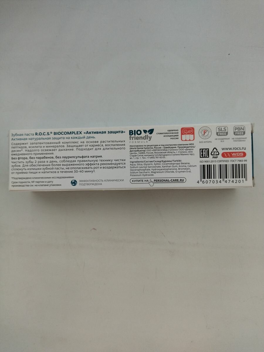 Ниже Вы можете прочитать отзывы на Рокс з/п биокомплекс Активная защита 94г, ознакомится с подробными характеристиками, посмотреть интересные обзоры и фотографии на Рокс з/п биокомплекс Активная защита 94г.