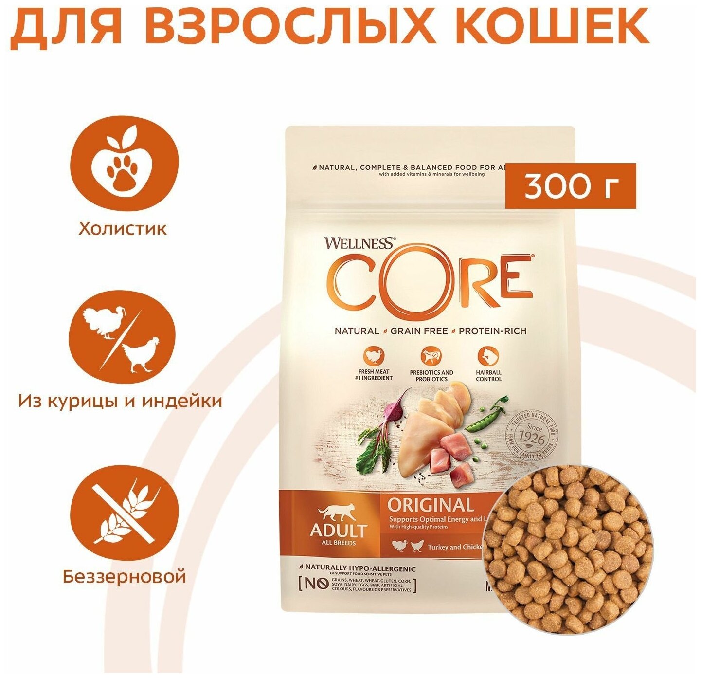 Wellness CORE Original-Сухой корм для кошек , беззерновой, курица, индейка 300 г